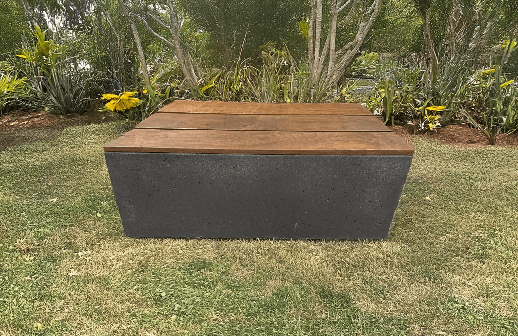 Concrete pouf with wood or recycled plastic covering