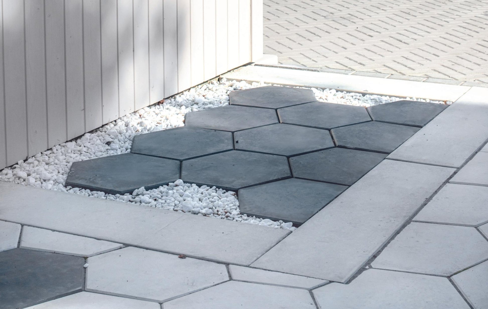 Hexagone est une dalle de béton conçue pour attirer l’oeil et créer des zones uniques.