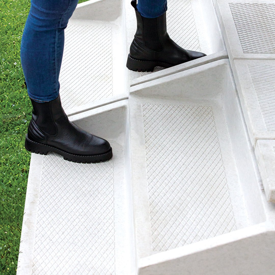 La marche en béton préfabriquée Losange s’adapte à votre terrain, peu importe sa configuration.