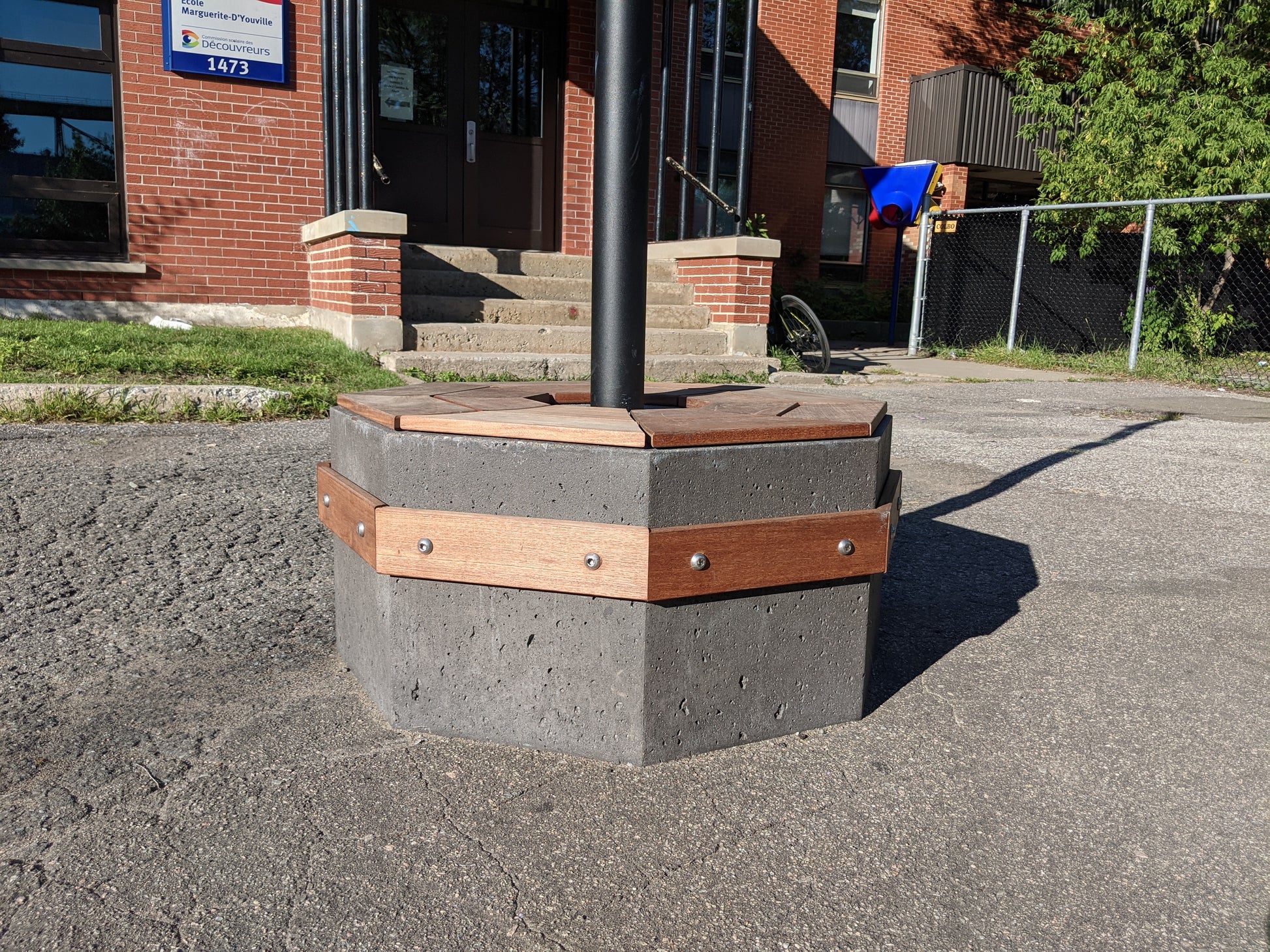 Un banc en béton octogonal