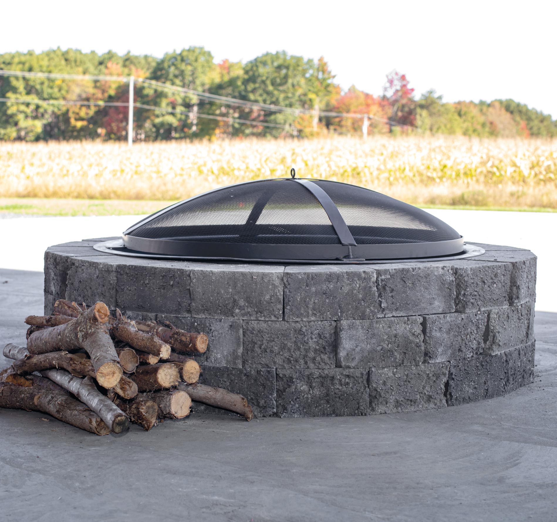 Le foyer extérieur Rustico gagne en style et en sécurité grâce à l’ajout du pare-étincelles et cuve.